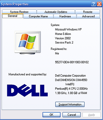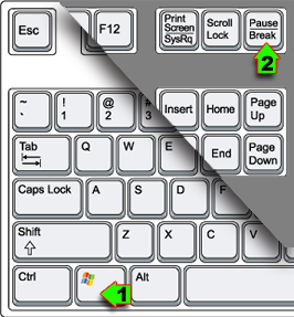 then Press the Pause/Break key to bring up the System Properties.