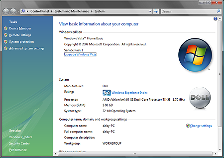 Ok here's what Vista system properties will
